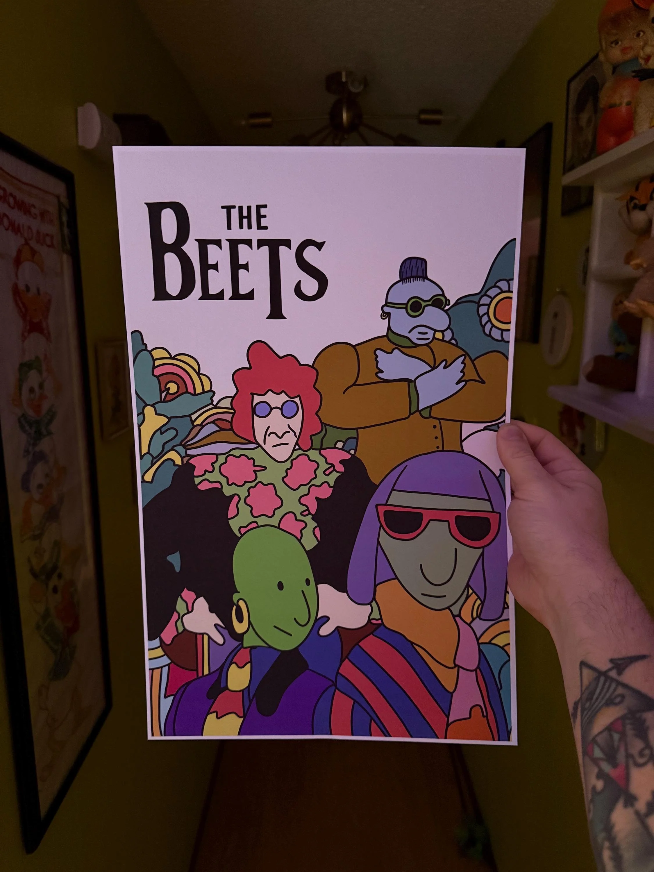 Everything at Small Sad Yard Sale is made by me — designed, printed, packed, and shipped out of my home studio. I use an Epson E8000 dye-ink printer with Koala paper. Art prints are on heavy-weight cardstock, and shirts are hand screen-printed with water-based inks. Buttons are printed on high-gloss photo paper and pressed by hand in small batches.