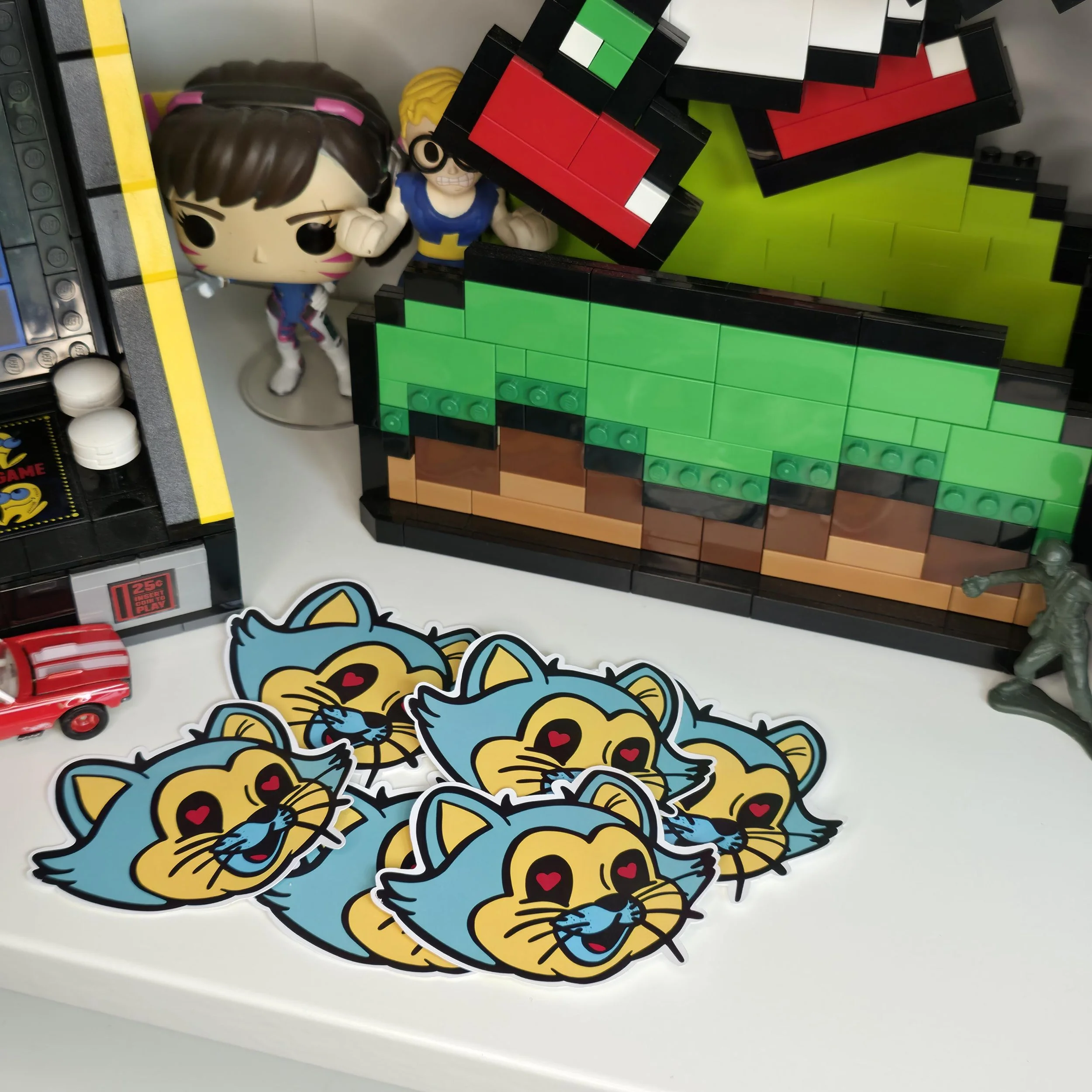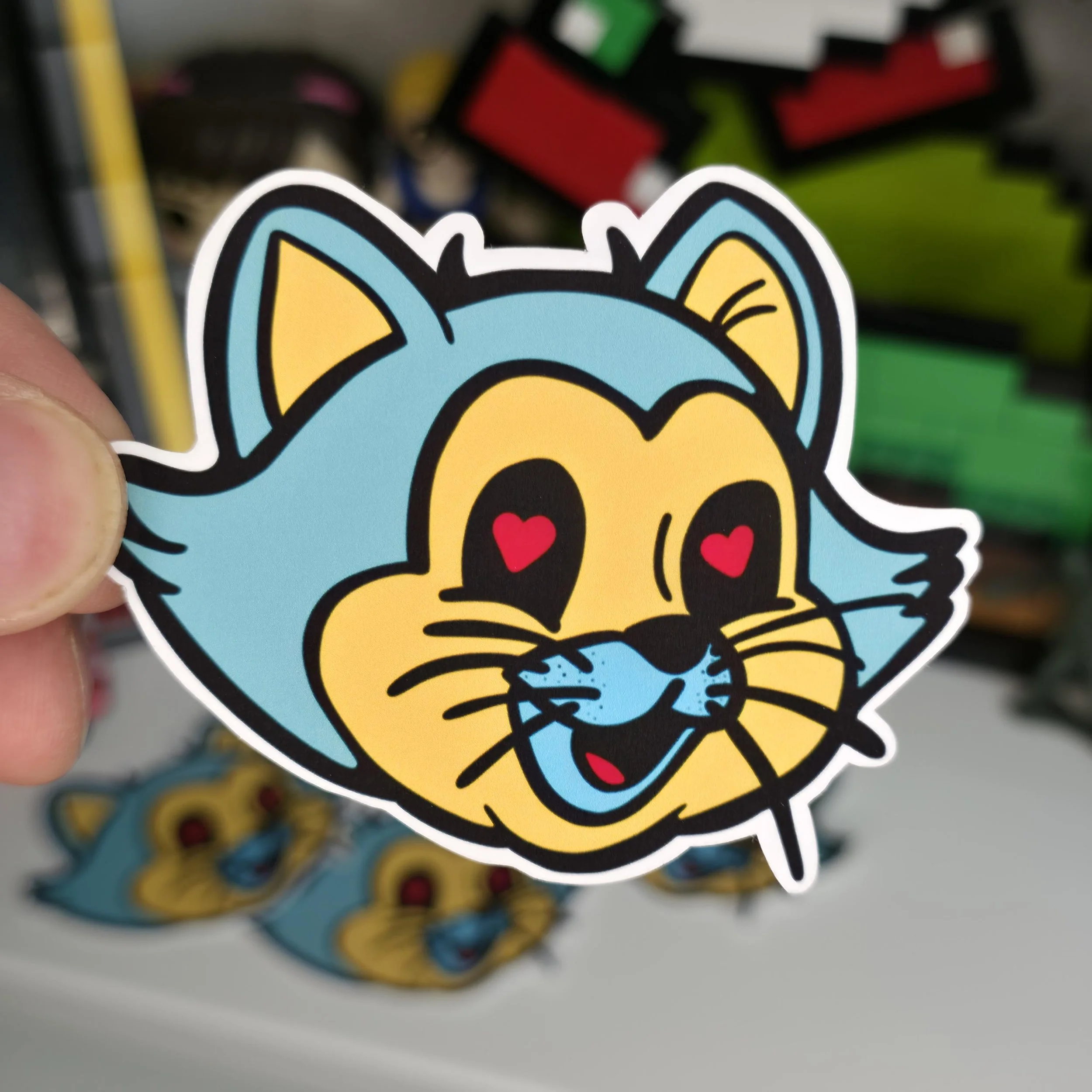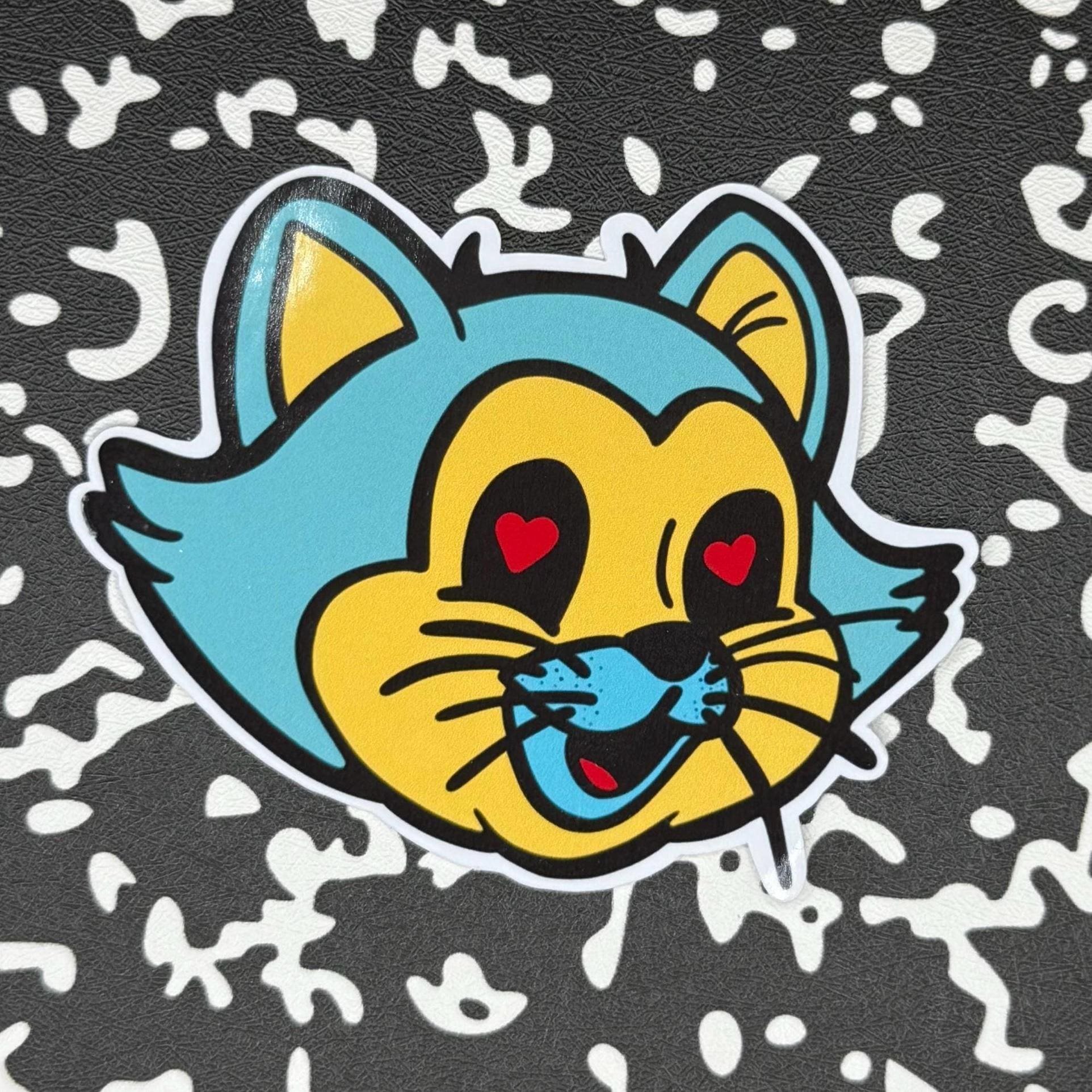 Cinema’s most beloved tuxedo feline appears quite dazed. This premium adhesive captures the legendary puppet’s companion sporting crimson ocular hearts, portraying a quintessential "head over heels" trope. Utilizing a striking teal and amber palette, the illustration offers contemporary flair to an iconic mascot.