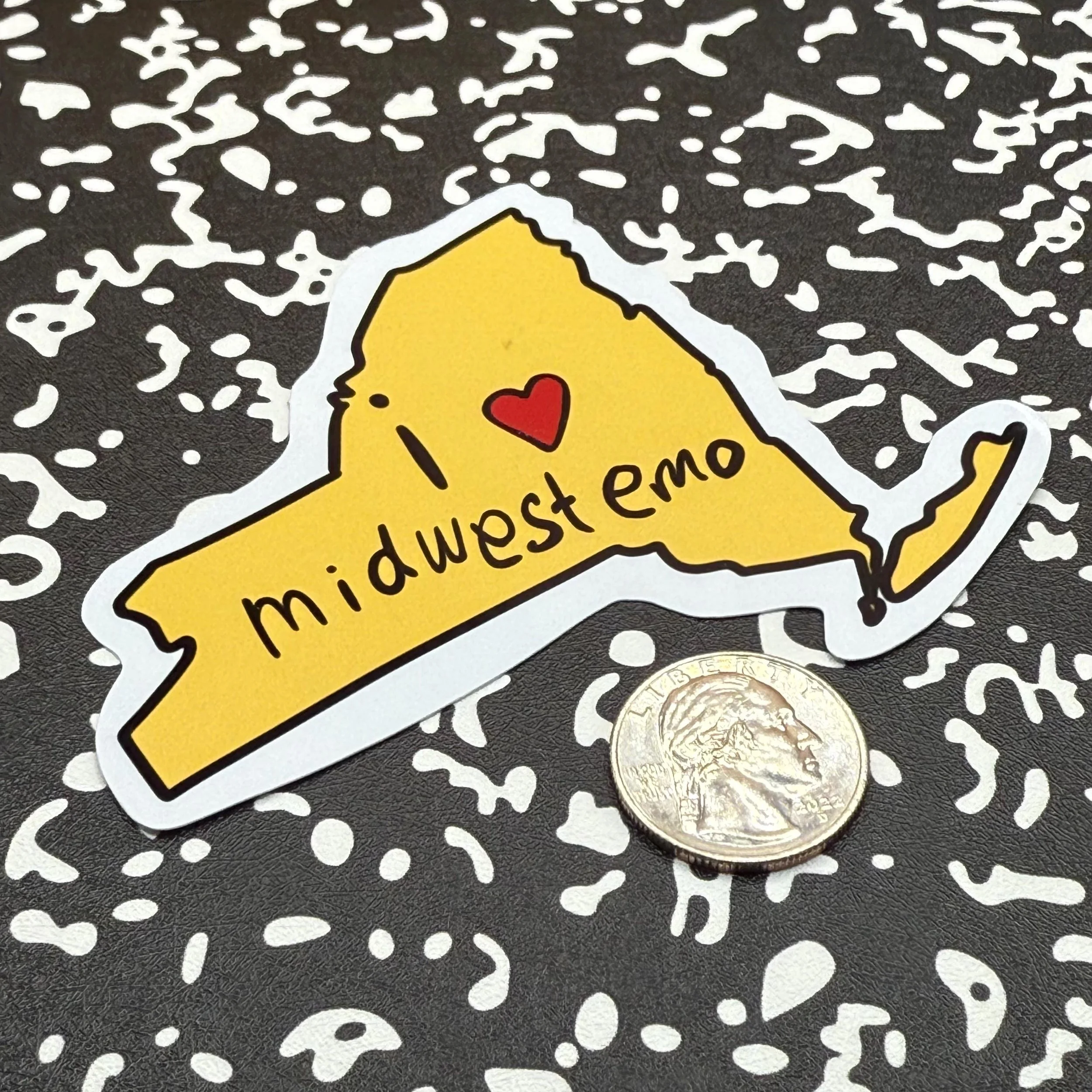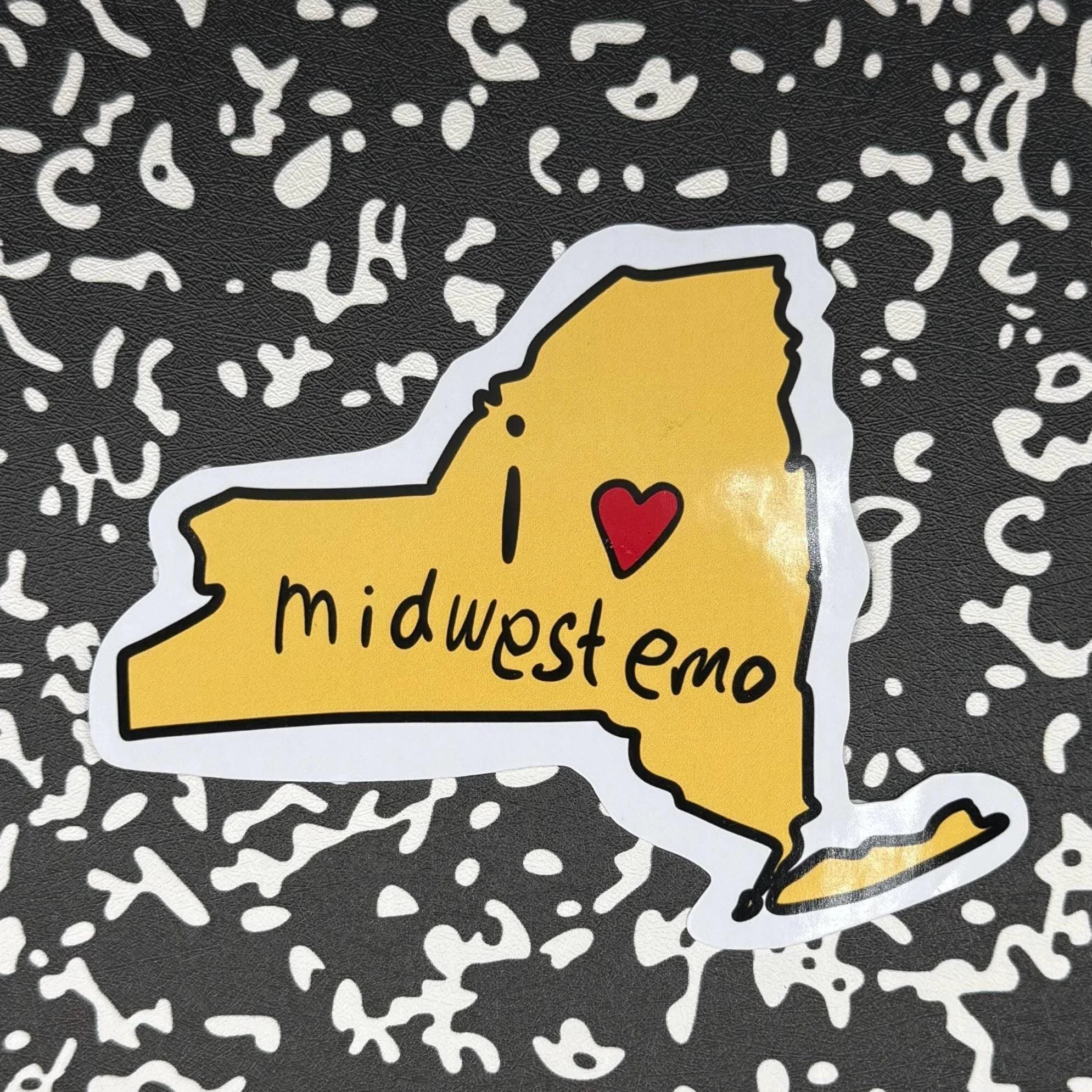 I Love Midwest Emo Sticker - New York State Shape Glossy Vinyl Decal