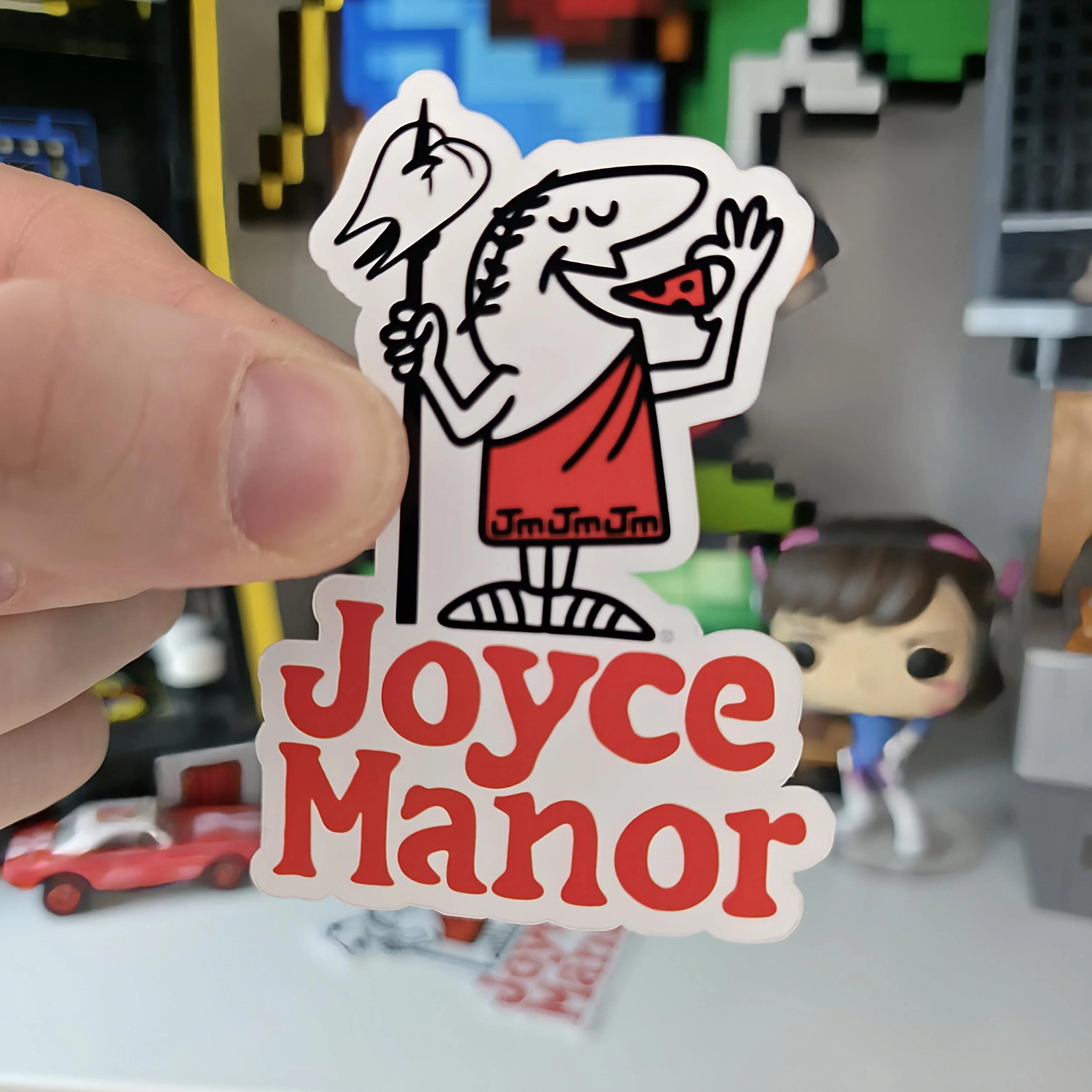 Original Joyce Manor x Little Caesars Mashup Design A hand-drawn 3-inch glossy die-cut sticker that blends the iconic Little Caesars pizza branding with the name of California punk legends, Joyce Manor. This sticker is made for those who appreciate the intersection of fast-food nostalgia and the 2000s emo revival scene.