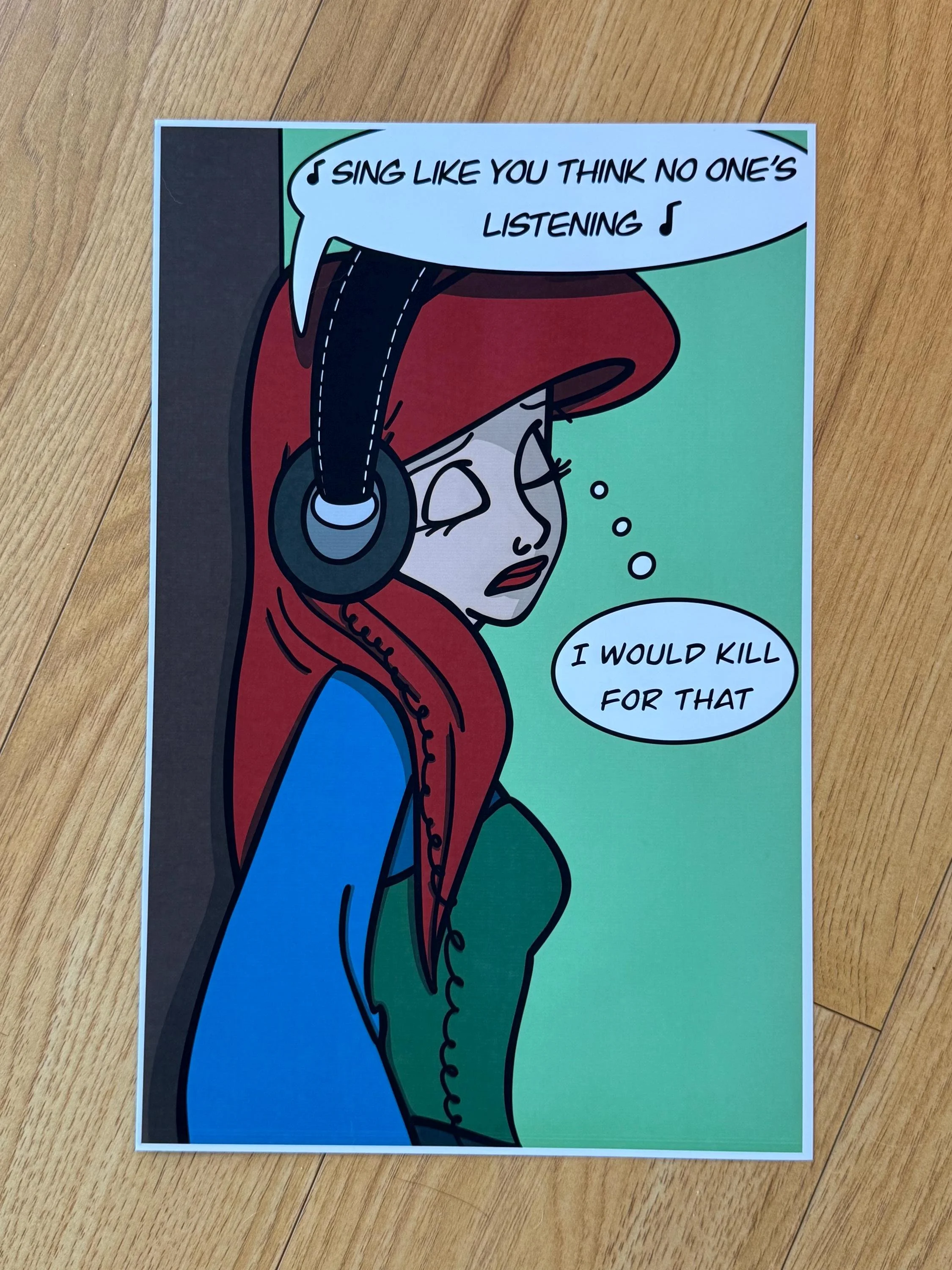 Store › Little Mermaid Emo Ariel Print Straylight Run John Nolan (11x17) Image 1 of 3 Image 2 of 3 Image 3 of 3 Little Mermaid Emo Ariel Print Straylight Run John Nolan (11x17) $18.00 An original 11x17 art print featuring a very emotional Ariel, headphones on, fully in her feelings.Inspired by early-2000s emo, Straylight Run lyrics, and that specific era where sadness, music, and identity were all the same thing.Printed on heavyweight matte paper.Size: 11x17 inches.Ships flat in protective packaging.Original artwork drawn by me.For emo kids, former emo kids, and existential Disney princesses on prom night. Add To Cart Added! An original 11x17 art print featuring a very emotional Ariel, headphones on, fully in her feelings.Inspired by early-2000s emo, Straylight Run lyrics, and that specific era where sadness, music, and identity were all the same thing.Printed on heavyweight matte paper.Size: 11x17 inches.Ships flat in protective packaging.Original artwork drawn by me.For emo kids, former emo kids, and existential Disney princesses on prom night.