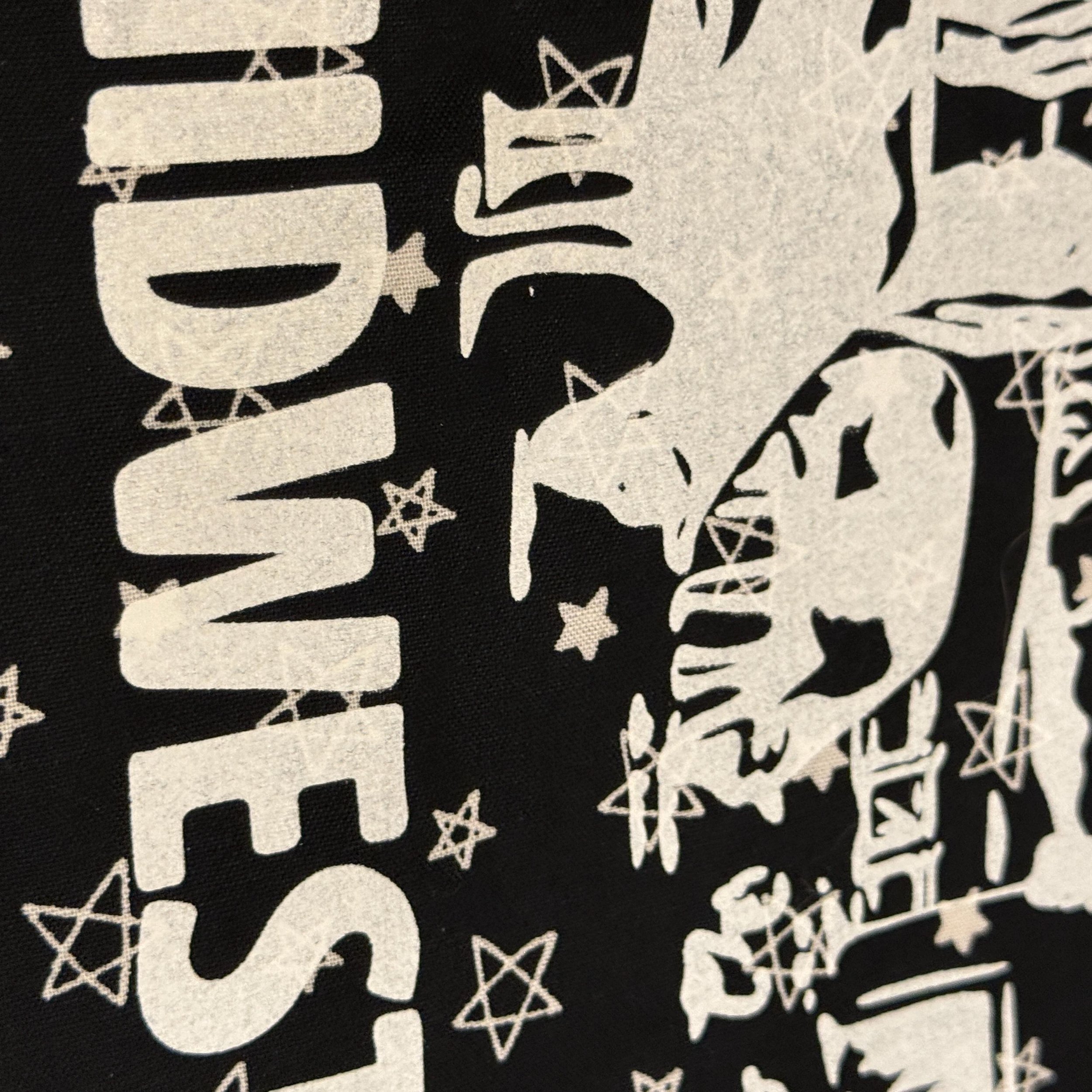 Sometimes a standard sticker just isn't enough to express your love for math rock and twinkling guitars. This experimental textile piece features the iconic Midwest Emo farm landscape hand-printed over a celestial star-patterned fabric. As a studio test run for the "Small Sad Yard Sale" brand, this item bridges the gap between rural nostalgia and existential stargazing.
