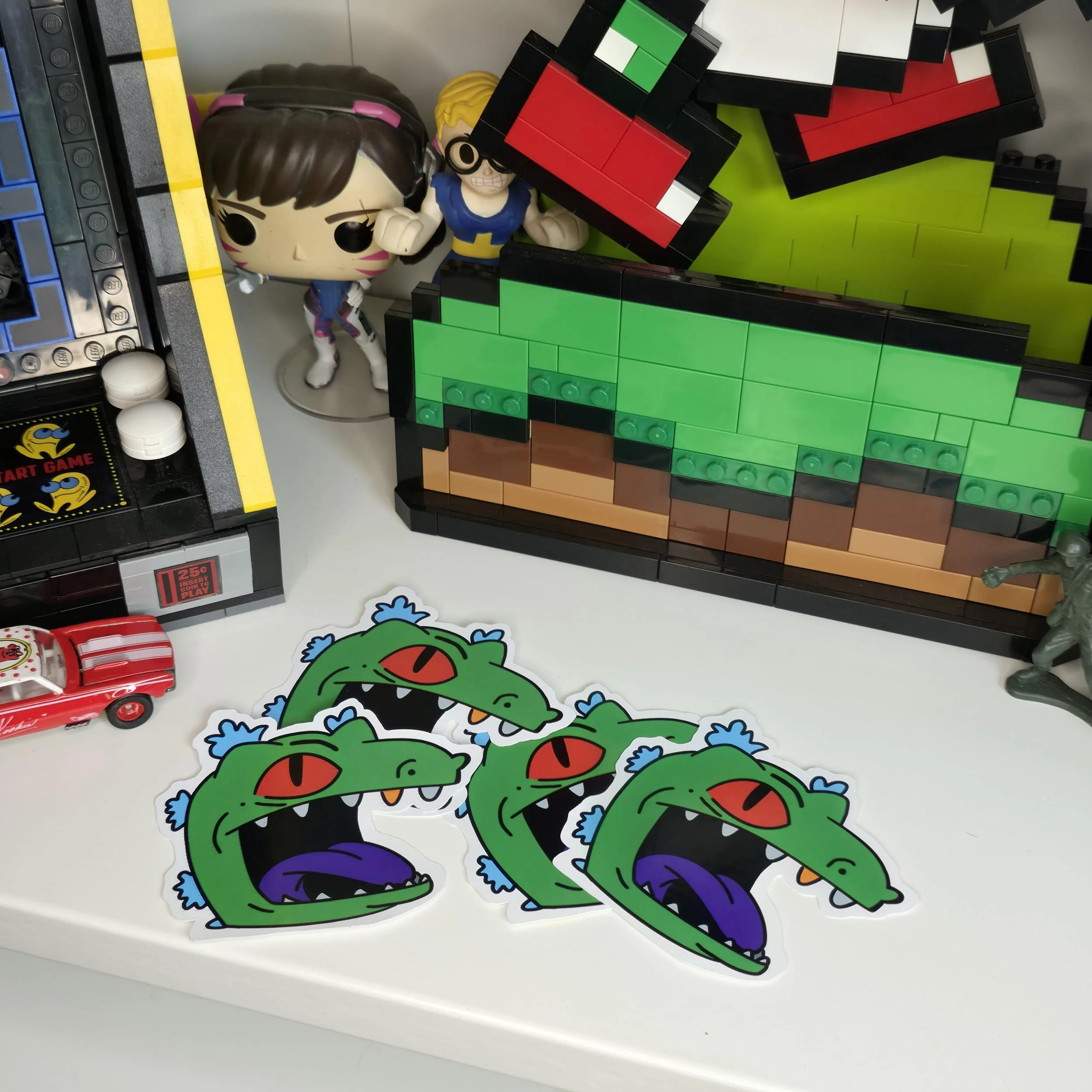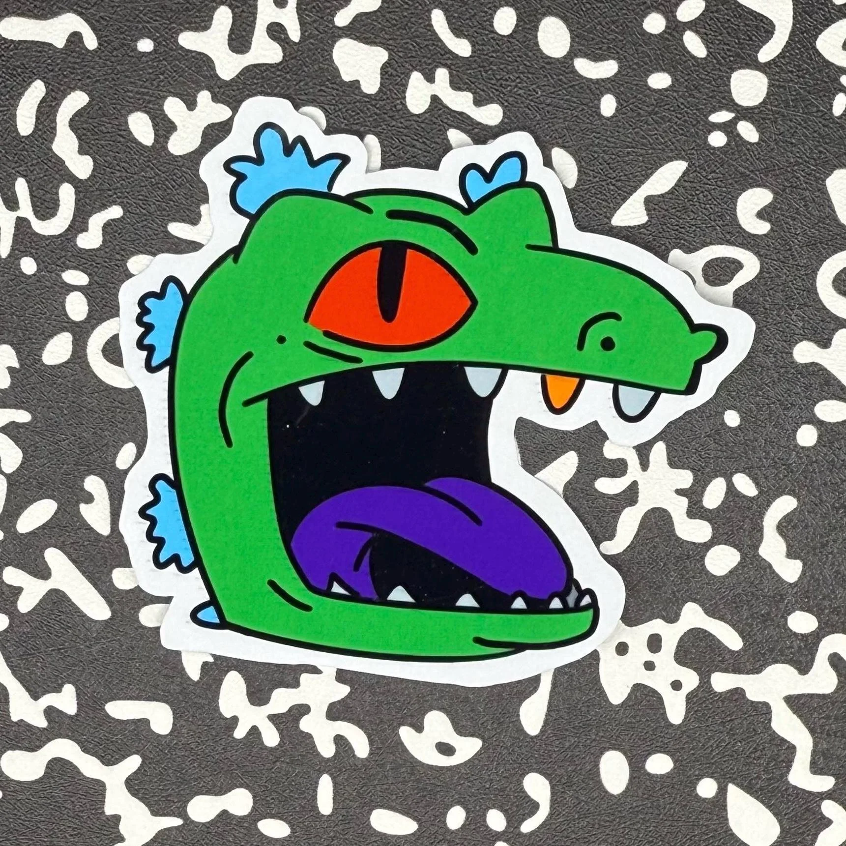 Everyone’s favorite prehistoric superstar has arrived to stomp all over your gear. This premium adhesive showcases the iconic emerald dinosaur from the Pickles' backyard in a striking, high-impact profile view. Featuring his signature apricot eyes, violet tongue, and azure dorsal fins, this design perfectly captures the chaotic energy of the legendary fictional toy.