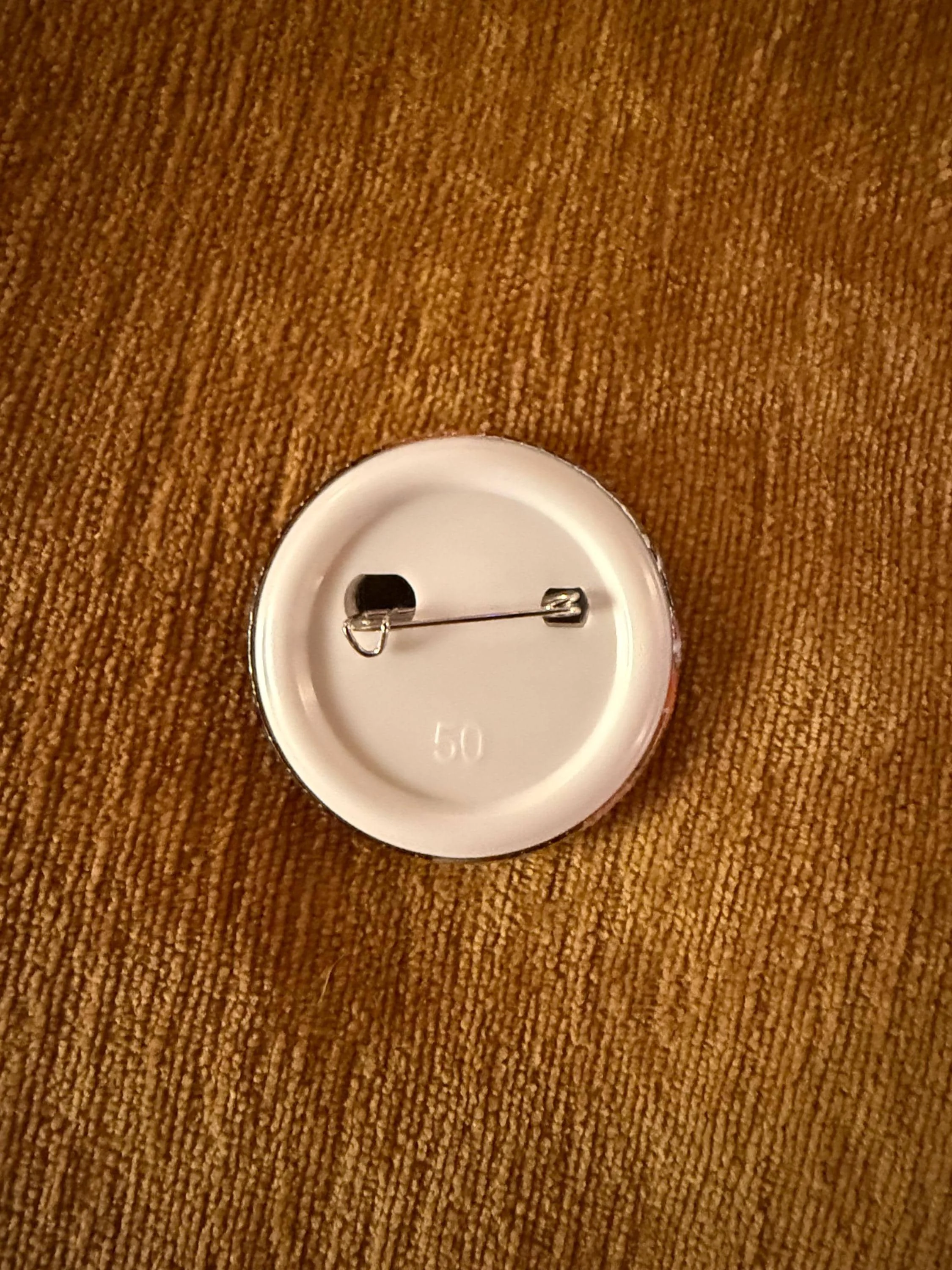 2 inch round button Glossy protective finish Secure metal pin clasp Original artist-made Reptar fanart with tie-dye design