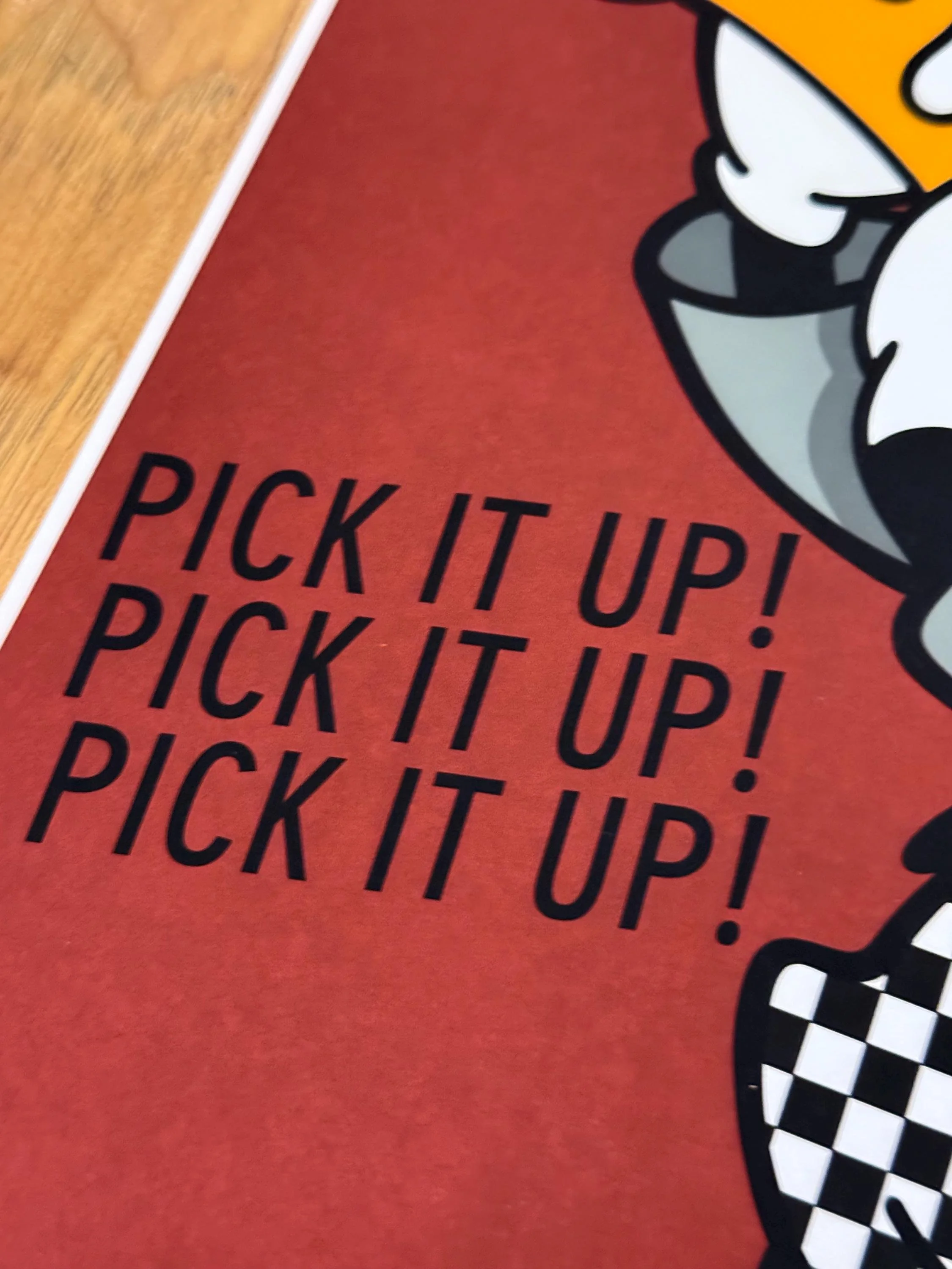 This 11x17 original art print features a custom illustration of Mickey in full rude boy attire, complete with a pork pie hat and checkerboard shorts, playing a trumpet. Hand-drawn and professionally produced on sturdy presentation matte card stock with vibrant dye ink, this poster is a must-have for fans of two-tone culture and classic animation.