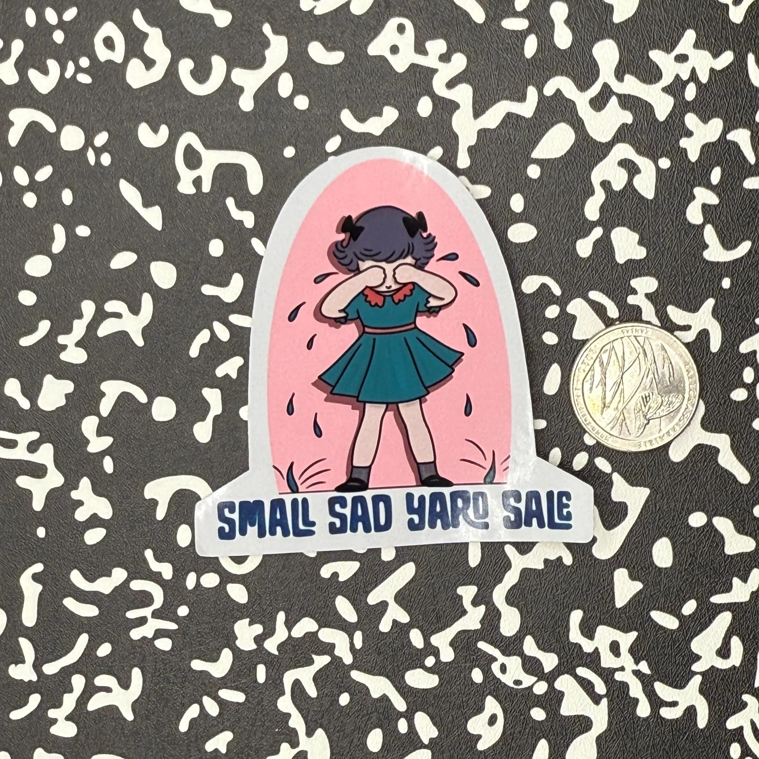 The official Small Sad Yard Sale logo sticker that helps keep the brand going.