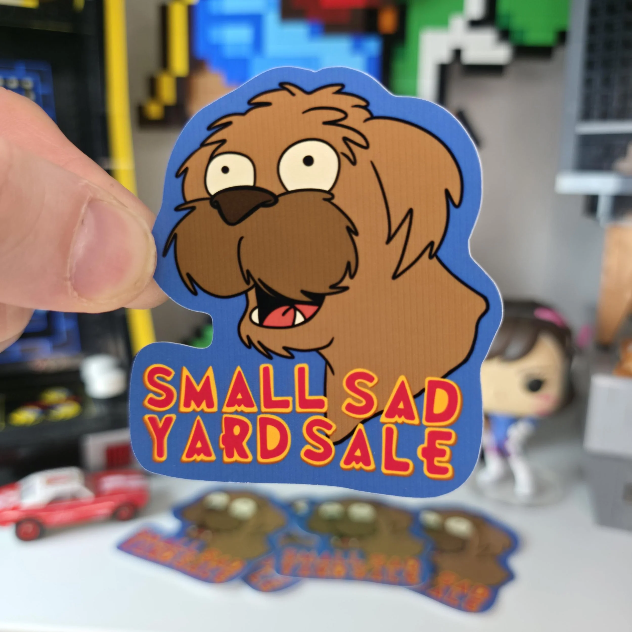This 3-inch glossy die-cut sticker features a hand-drawn Seymour from Futurama paired with our "Small Sad Yard Sale" branding. It’s a tribute to the most loyal dog in the galaxy and the bittersweet, nostalgic energy that defines the midwest emo scene. Whether you’re a fan of "Jurassic Bark" or just love a good tear-jerker mashup, this sticker is for you.