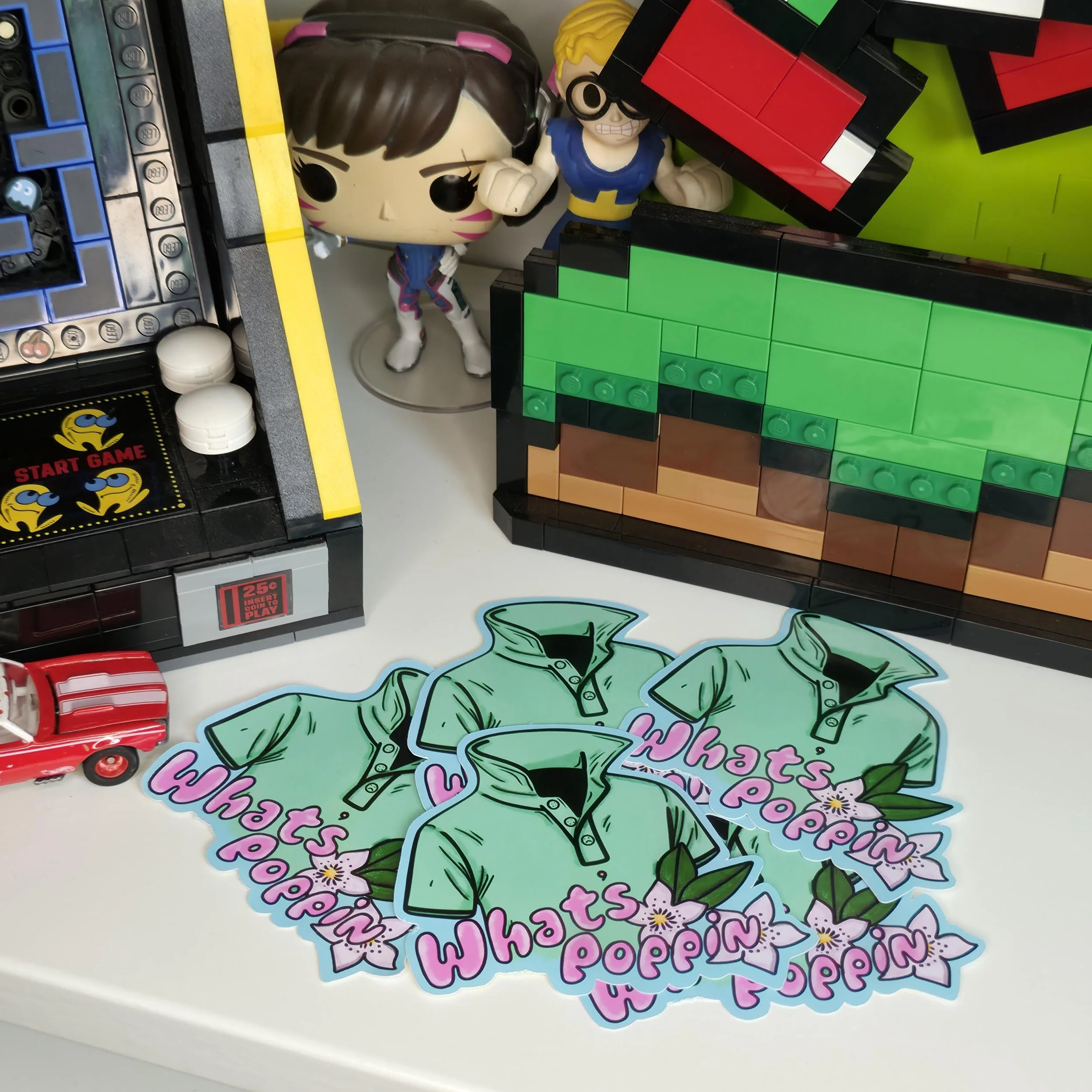 What’s Poppin Polo Shirt Sticker – Funny Alt Cartoon Vinyl Decal y2k 2000s